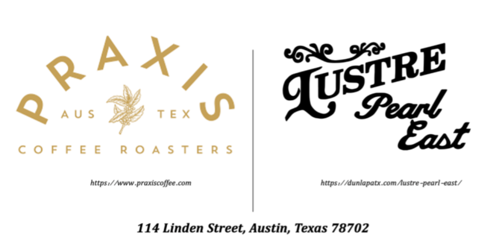 Praxis Coffee Roasters & Lustre Pearl East Proudly rooted and roasted in Austin, Praxis Coffee Roasters was founded by a desire to bring coffee excellence and familia together. They directly source and roast elite coffees from around the world. Yummy!